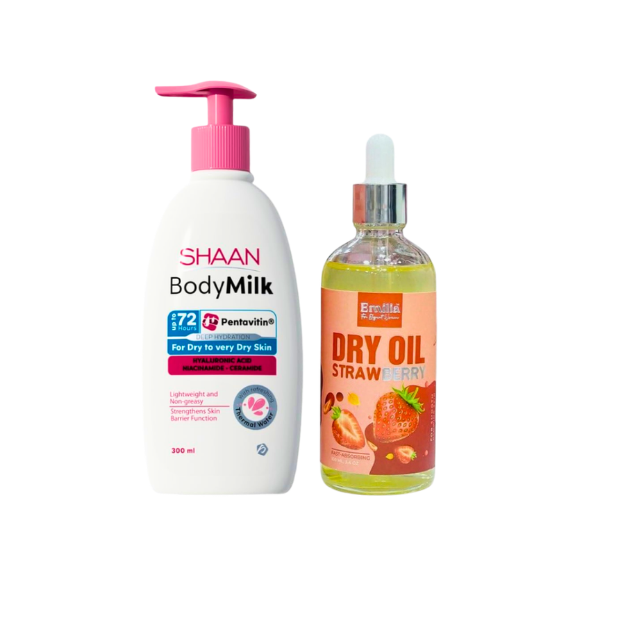 بادي أويل إيميليا بالفراولة مع بادي لوشن شان علشان نعومة واضحة، ترطيب يدوم، وبشرة ريحتها حلوة وتحسّيها صحية من أول استخدام 💖