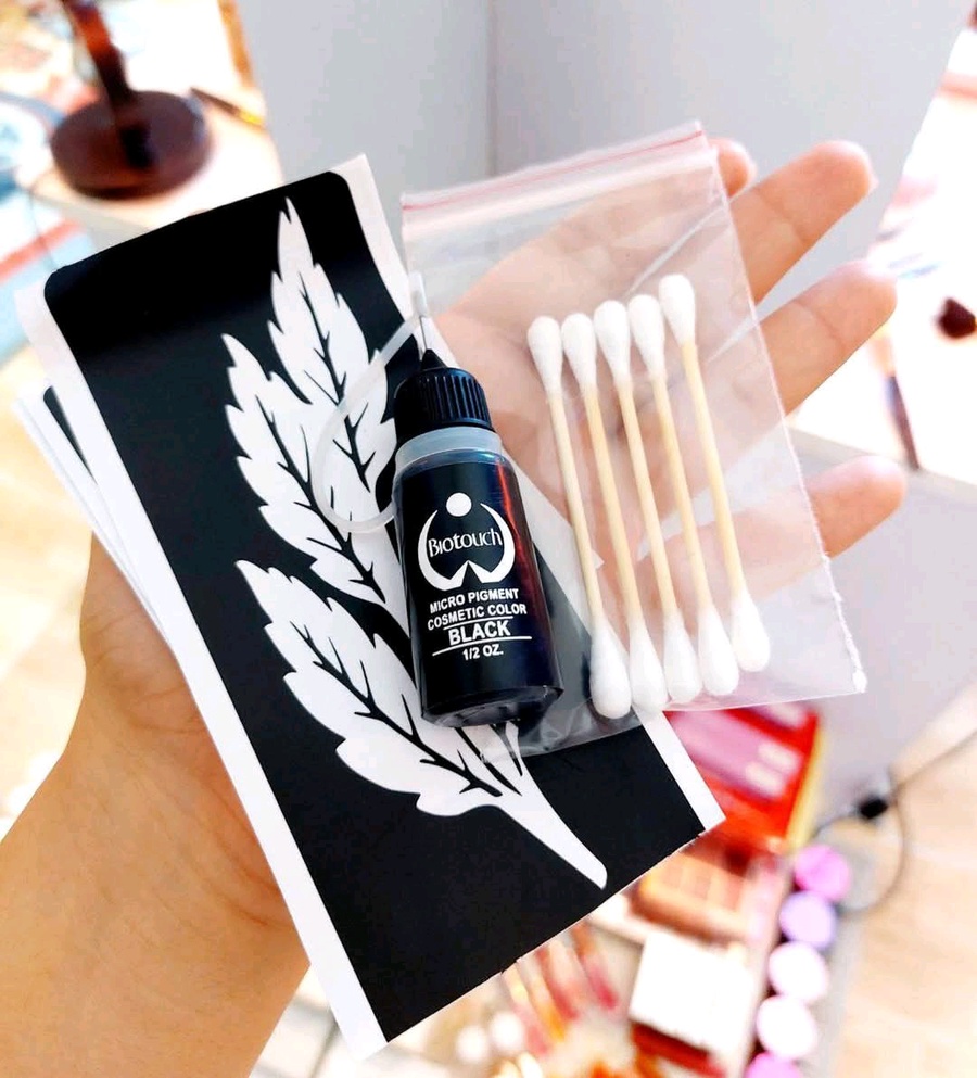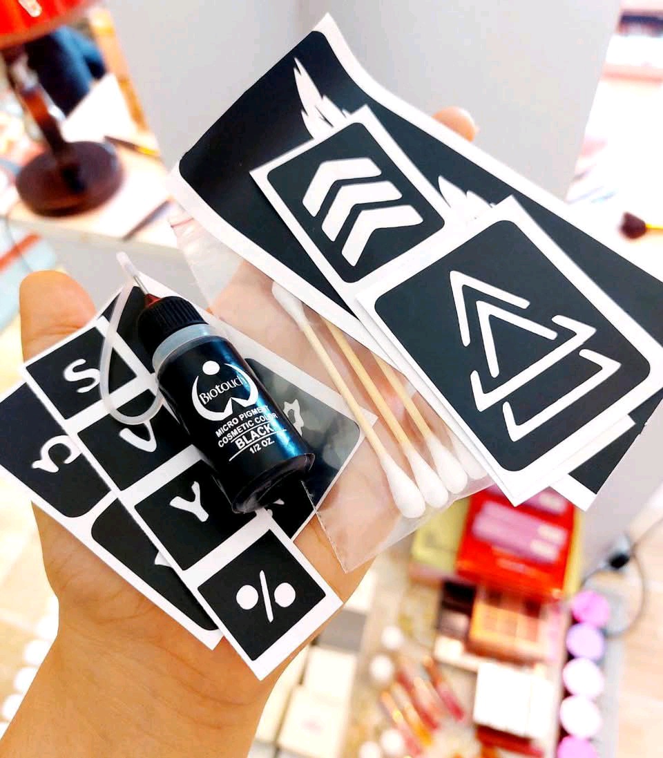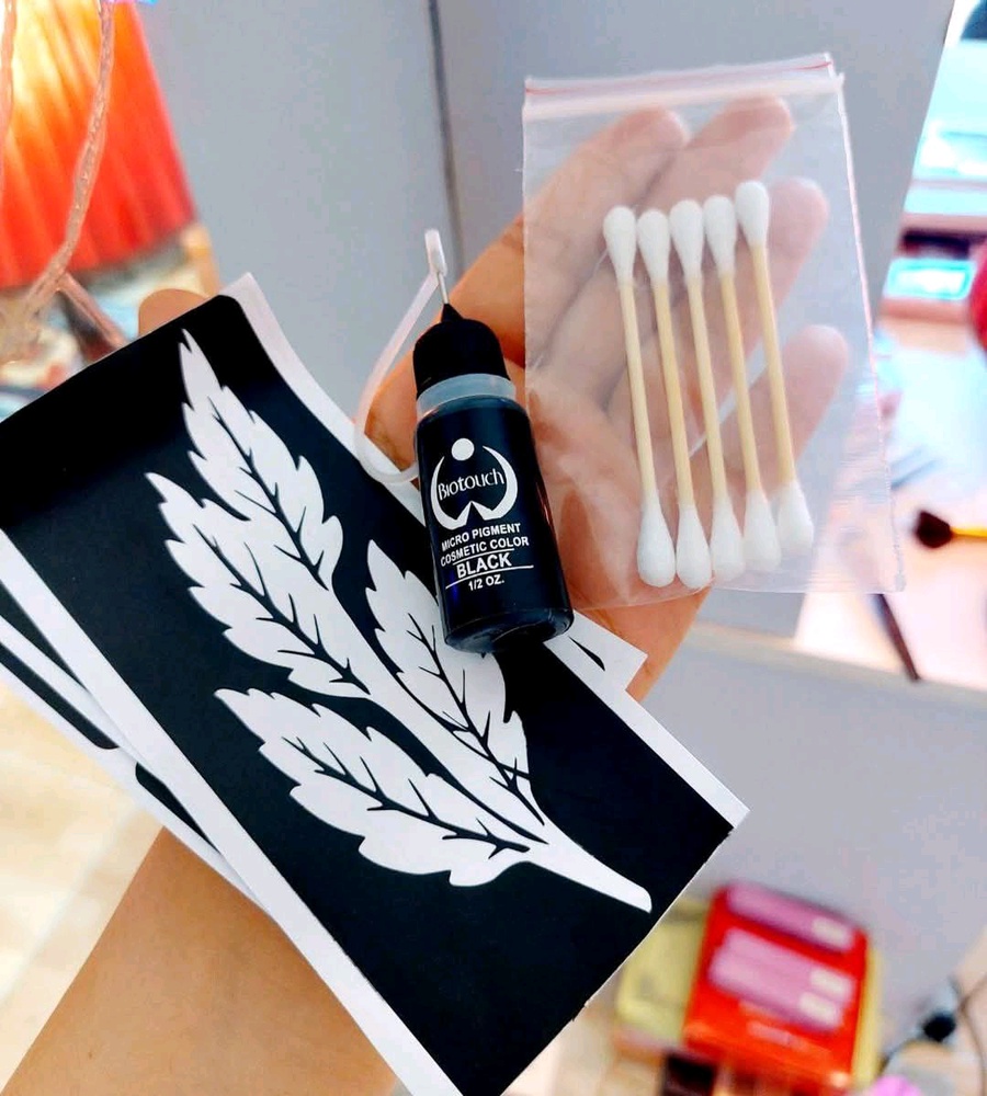(حبر تاتو اسود - ديزاين مختلفين - أعواد توزيع - ٢جلافز للأيدي)